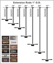 Fixture Mounting Stems - 12" (1/2 NPSM thd. Stems, 3/4 dia. overall). All stems made of corrosion resistant aluminum alloy (except BR and BBR) with baked thermoset powder coating to match fixtures. Used with: In-ground support stakes (low voltage only) and Surface mounting flange (low or line voltage)